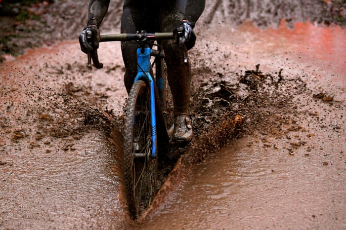 A cyclist rides through the mud during the 11th Namur World Cup.