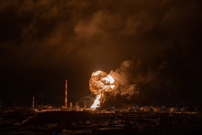 A blaze rips through the small-scale Ukhta oil refinery.