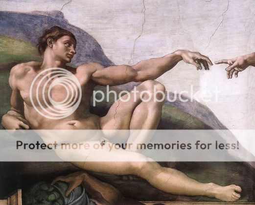 Oh yeah, the above piece is called "Creation of Man", by Michelangelo. It is on the ceiling of the Sistine Chapel in Rome.